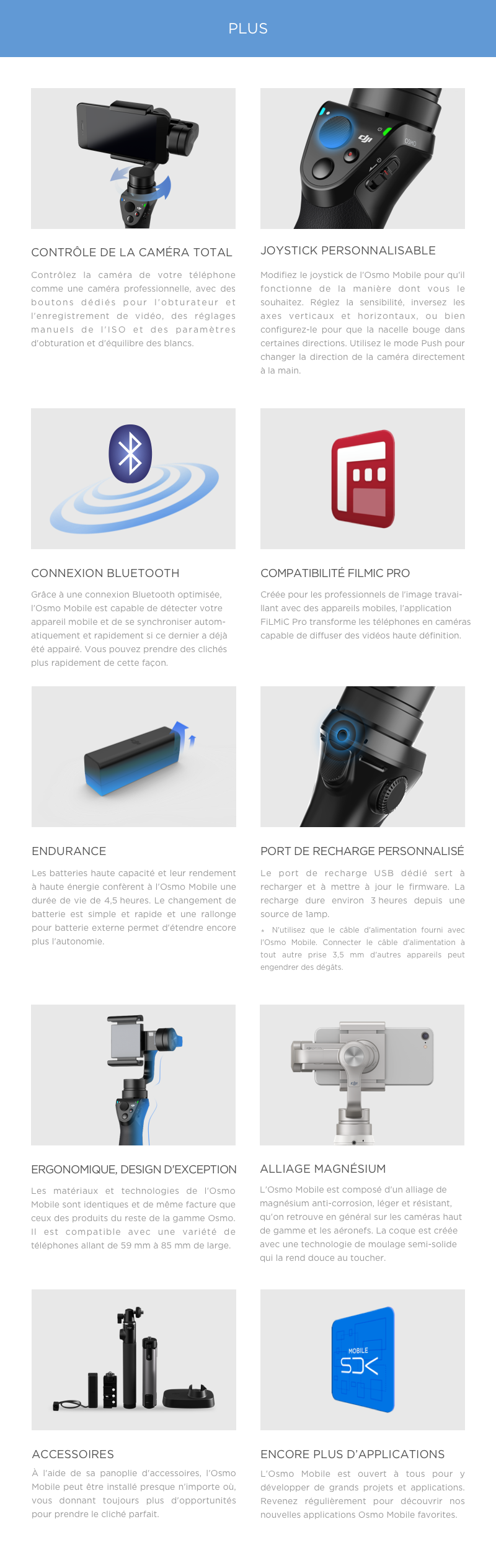 - Profitez de DJI GO mais pas uniquement. L'Osmo Mobile est ouvert aux modifications des développeurs.