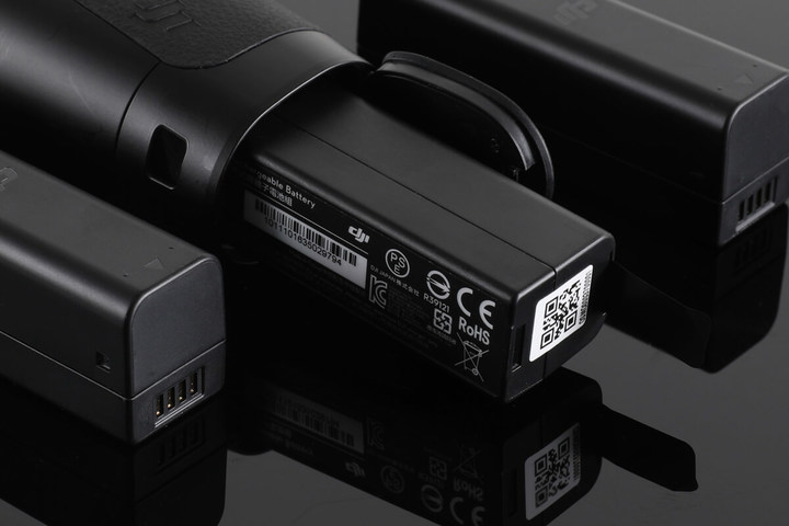 A High Capacity Osmo Intelligent Battery reaches 1225mAh (14.1Wh) and 11.55V. Use a DJI charger to recharge intelligent batteries.