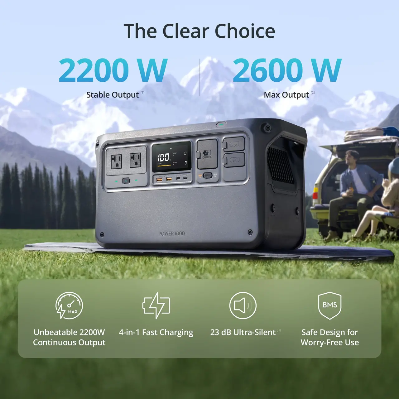1. At a room temperature of 25° C (77° F), Power 1000 can stably provide a max continuous output of 2200 W until the battery runs out. Data measured in a DJI laboratory.