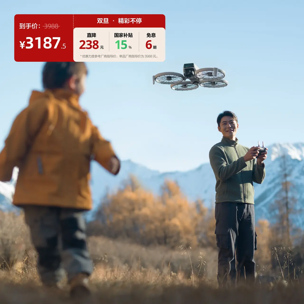 DJI Flip 是 DJI 首款自带可折叠全包围桨叶保护罩的航拍无人机*,既适合航拍风光,也适合记录日常生活、休闲运动。