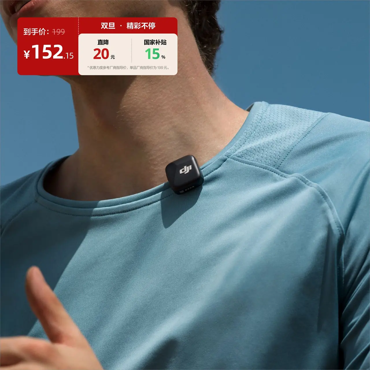 1. More compact design: DJI Mic Mini is small and ultralight, with the transmitter weighing only 10 g. [1] Compared to DJI Mic 2, it offers a more lightweight and discreet wearing experience. It supports both magnetic and clip-on wearing styles, ensuring it doesn't weigh down your collar or flip outward, making it suitable for various wearing needs.