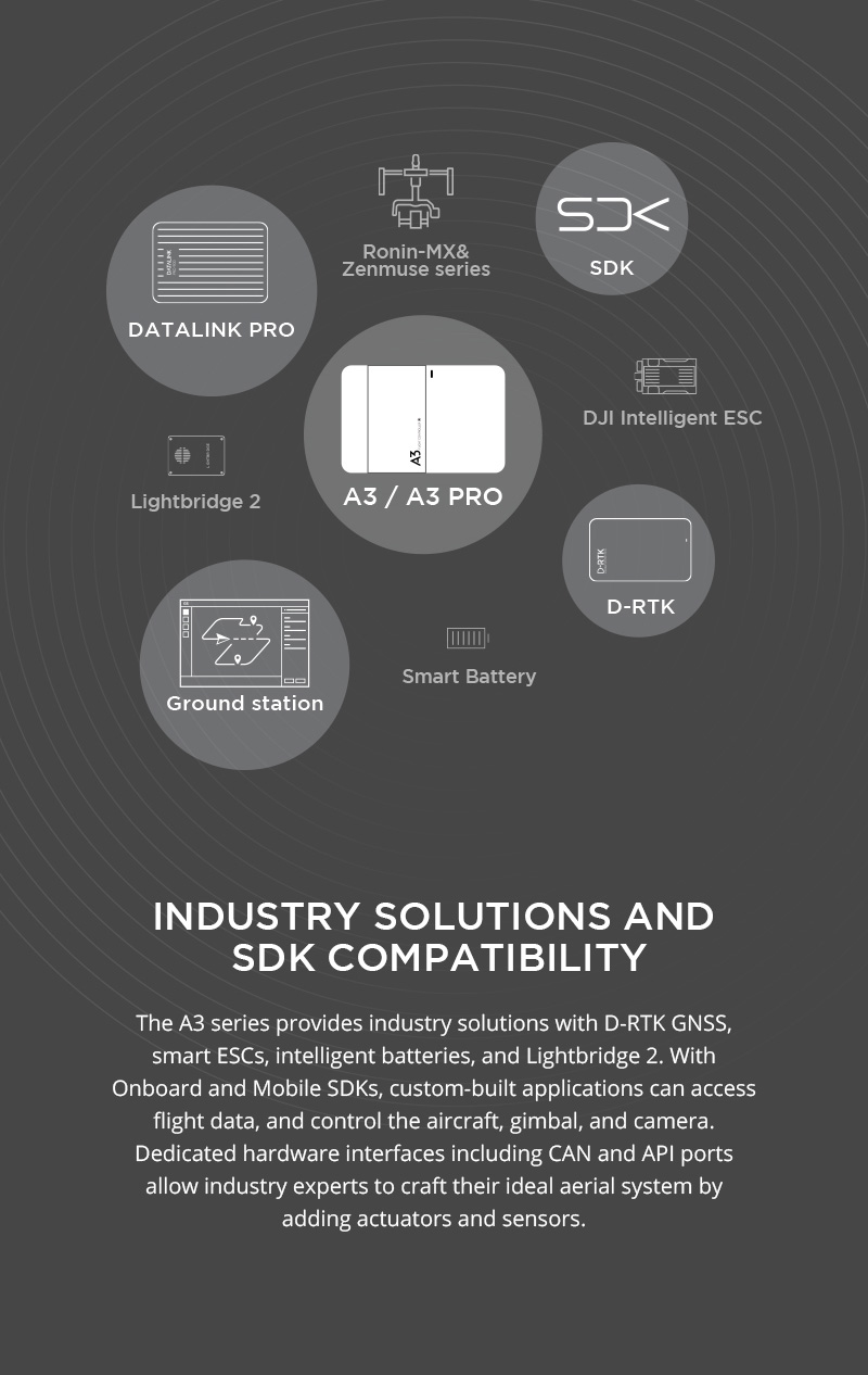 - Compatible with D-RTK GNSS, Smart ESCs, Intelligent Batteries, and Lightbridge 2