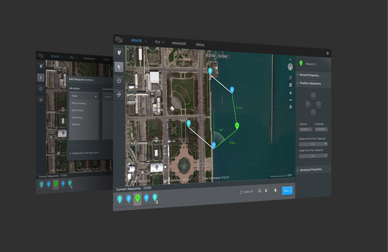 Course Lock, Home Lock, Point of Interest and Waypoints are available when using the A3 with Lightbridge 2 and the DJI GO app.