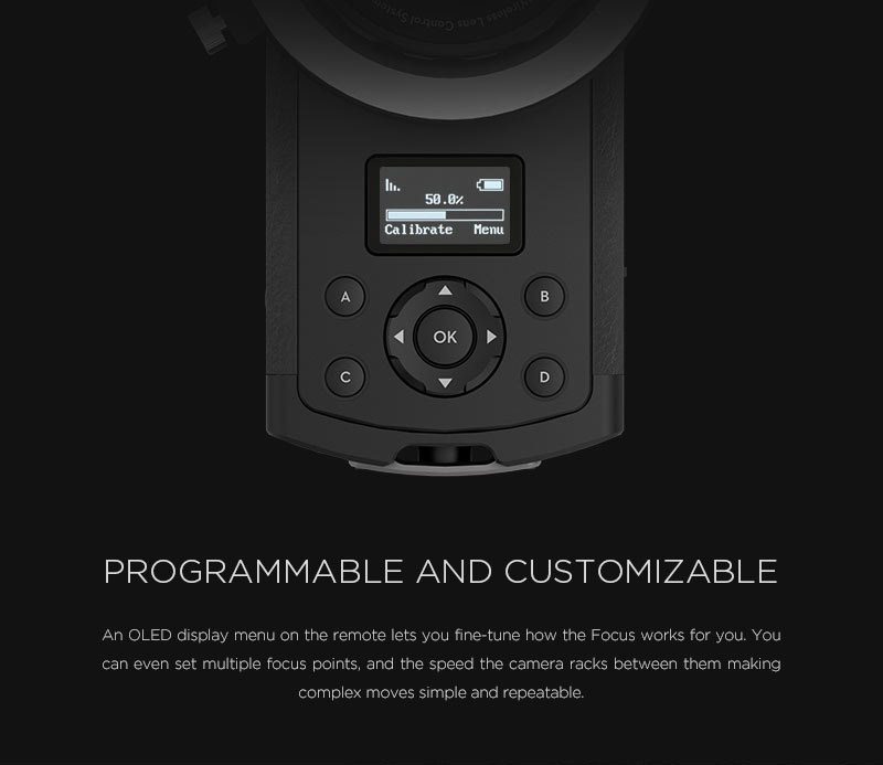 The DJI Focus uses DJI’s expertise in brushless motors for previously unheard of levels of precision and accuracy. The brushless motor puts just ±0.02° of accuracy in your hands so that turning the remote is just like turning the lens itself. It also features high torque and a fast reaction speed so you can keep your subject in focus no matter how it moves.