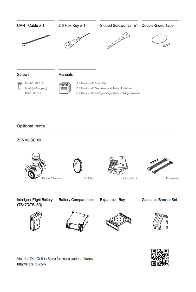 The Matrice 100 is compatible with a wide range of DJI accessories