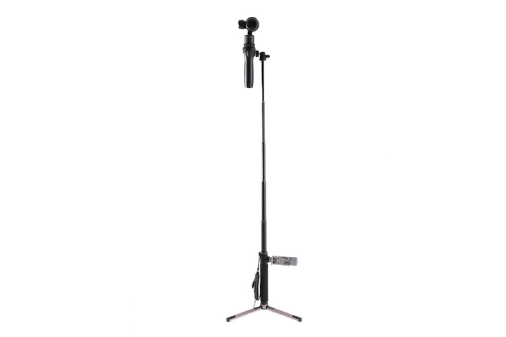 The longest Extension Rod for the Osmo is 980 mm. As for the tripod, two different sizes are supported: 160 mm (radius) x 45 mm (height); and 260 mm (radius) x 58 mm (height). The Tripod must be used with the Extension Rod.