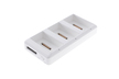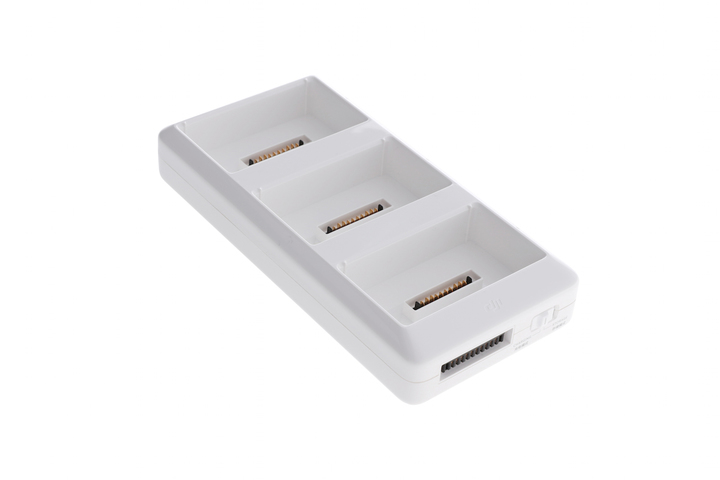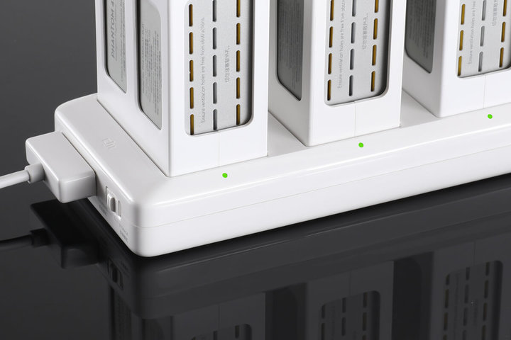 The Phantom 4 Battery Charging Hub is designed for use with the Phantom 4 Intelligent Flight Battery. When used with the Phantom 4 Battery Charger, it can charge up to three Intelligent Flight Batteries. The Intelligent Flight Batteries will be charged in sequence according to their power levels, from high to low. It will take approximately 3.5 hours to fully charge three Intelligent Flight Battery. Storage Mode allows the Charging Hub to keep the Phantom 4 Intelligent Flight Battery at a 50% charge, which is ideal for storage.