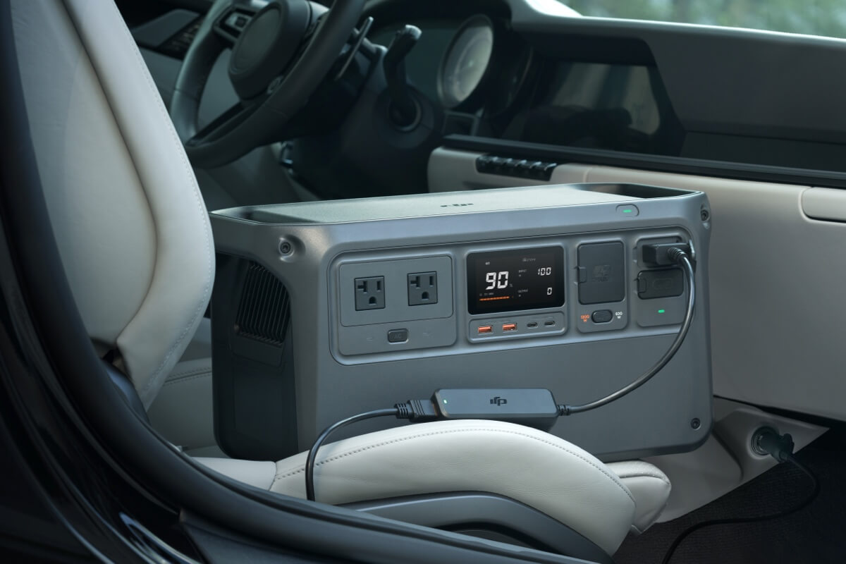 Using this cable, DJI Power series products can charge car-powered devices, such as a car refrigerator, with a car charger plug.